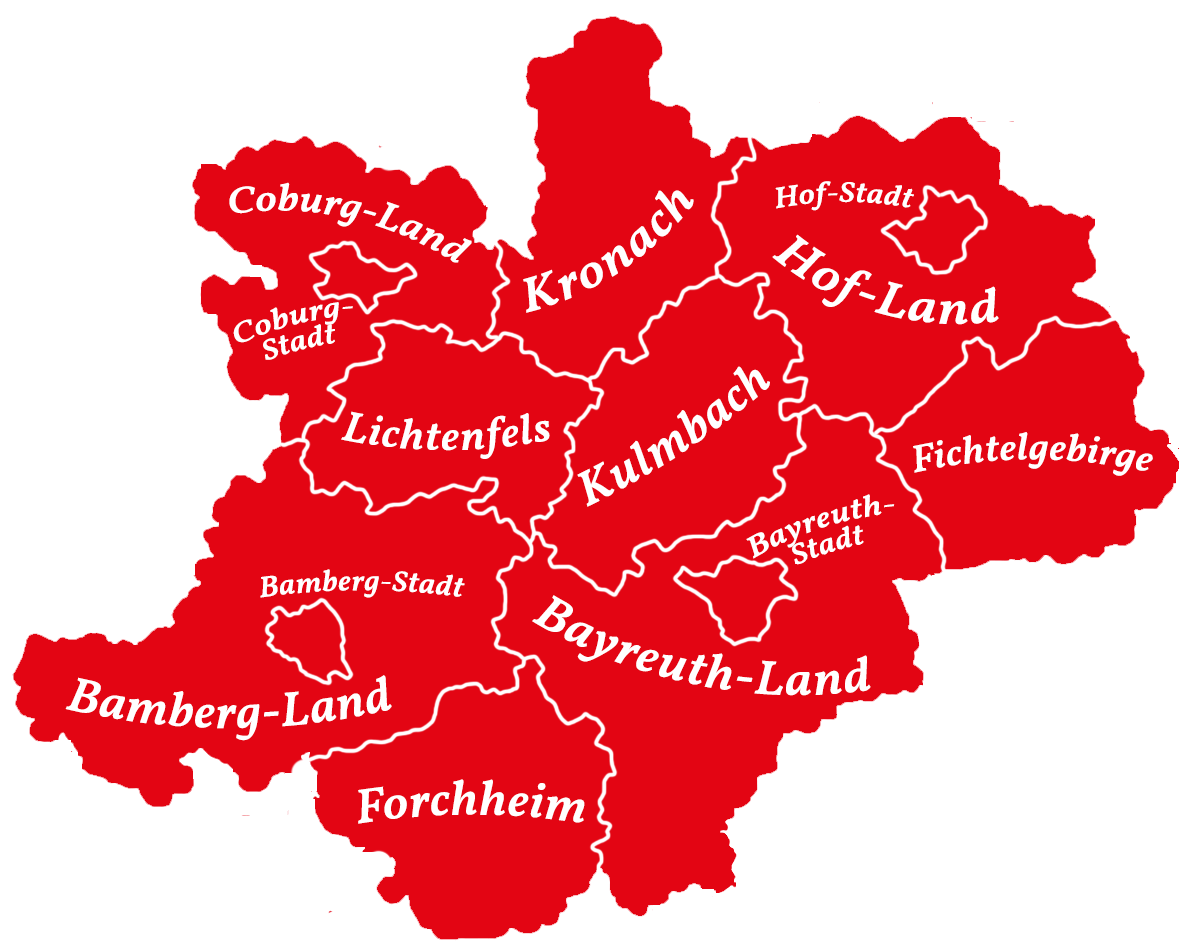 Unser Bezirksverband teilt sich in 5 Unterbezirke und 13 Kreisverbände auf:
